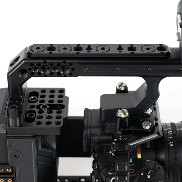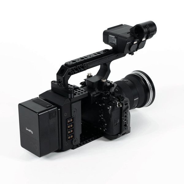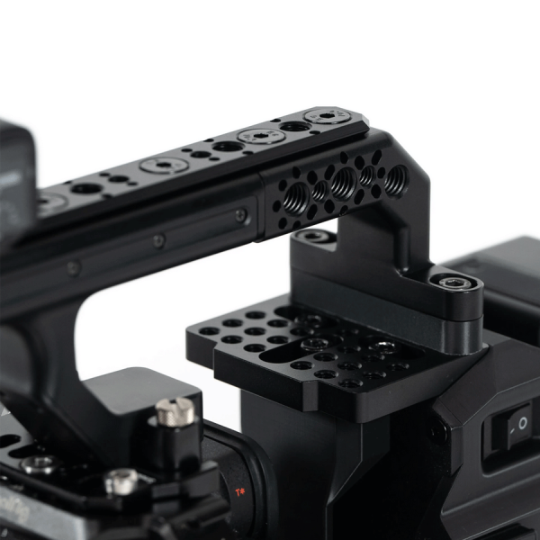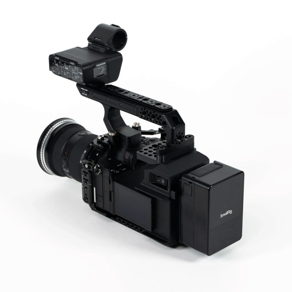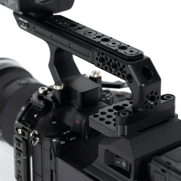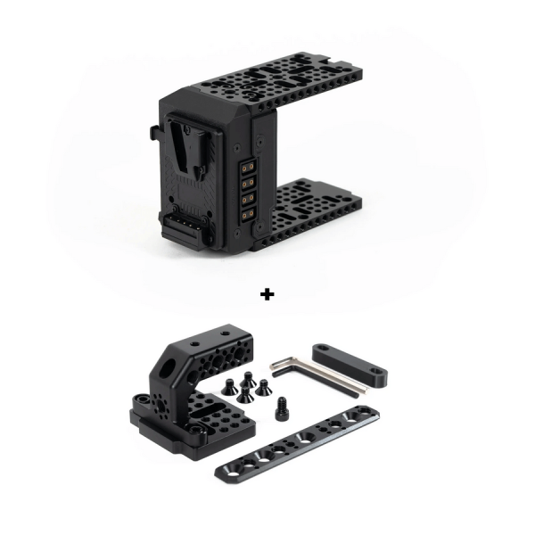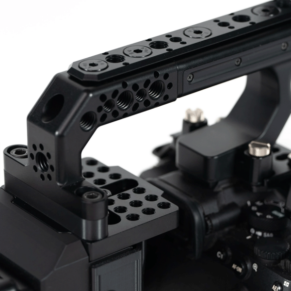 Le kit inclut de nombreux points de montage filetés 1/4"-20 et 3/8"-16 répartis sur la poignée, à la base et en dessous du module, afin d’y fixer bras articulés, accessoires vidéo ou alimentations secondaires. Entièrement fabriqué en aluminium anodisé, incluant les cheeseplates et le support XLR, il garantit robustesse, légèreté et compatibilité parfaite avec votre cage caméra Sony.
