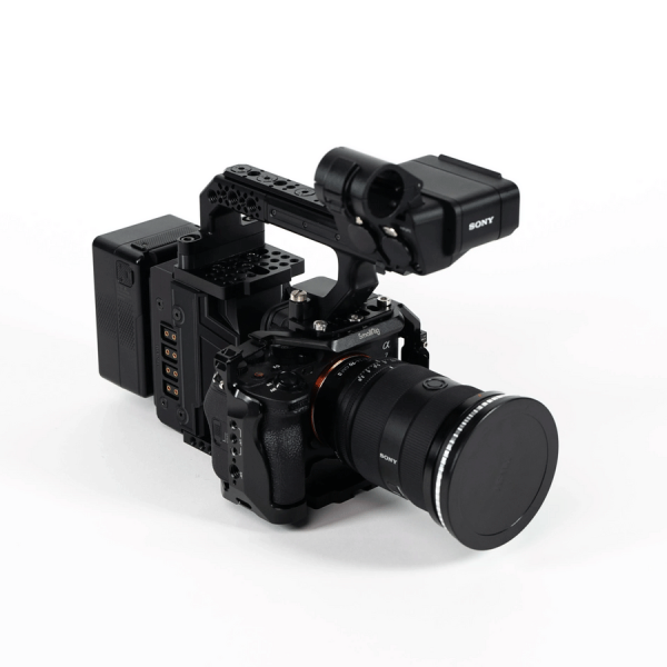 Le Cinemax Pro Sony A7 de Fuze Gear transforme votre boîtier hybride plein format en rig cinéma : compatibilité XLR-H1, alimentation centralisée V-Mount, multiples filetages pour accessoires et construction robuste en aluminium anodisé. Conçu et assemblé en France.
