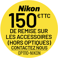 150 € TTC de remise sur les accessoires quel que soit la marque pour une valeur supérieure ou égale à 150€ TTC (hors optiques) achetées simultanément (OP1110-NIKON)