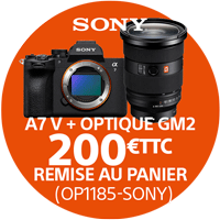Remise de 200€ TTC appliquée au panier pour l'achat simultané du nouvel Alpha 7V et d'une optique 2470GM2 / 70200GM2 / 1635GM2 / 85F14GM2. Offre valable jusqu'au 31/12/2025 (OP1185-SONY).