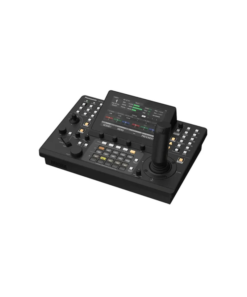 Le PANASONIC AW RP 120 est un pupitre de contrôle avancé de camera PTZ compatible avec une gamme étendue de caméras robotisées telles que les AW UE150, AW UE100, AW UE70 et AW HE130. Plus large et plus performant que le RP50, il permet de contrôler jusqu’à 5 caméra en RS 422 et jusqu’à 100 en IP.