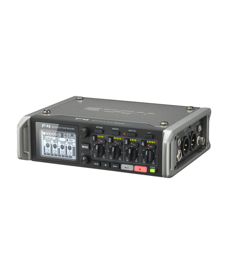 Zoom F4 : enregistreur de terrain 6 entrées / 8 pistes avec préamplis ultra-silencieux (75 dB gain, -127 dBu EIN), enregistrement jusqu’à 24-bit/192 kHz, timecode précis (0,2 ppm), alimentation multiple, double slots SD, sorties XLR et USB interface audio. Léger et robuste pour tournage pro.