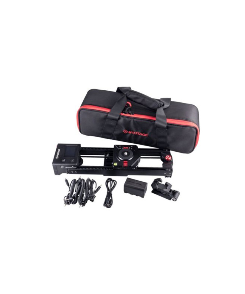 iFootage Shark Slider Nano : slider motorisé compact avec axe panoramique intégré. Contrôle via écran tactile ou appli mobile. Distance de course jusqu’à 50 cm, moteur silencieux (38 dB), mode Auto Gesture Learning, alimentation NP-F/USB-C. Charge max 3,5 kg. Bundle avec sac, batterie et câbles.