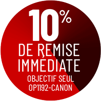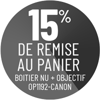 15% appliquée au panier pour l'achat simultané d'un boîtier et optique éligibles. Offre valable jusqu'au 26/01/26 inclus (OP1192-CANON).