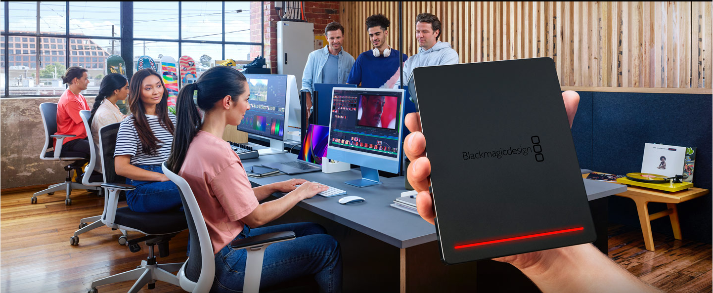 Idéal pour les plateaux de tournage, stations DIT ou studios de post-production, il permet aux monteurs, étalonneurs et ingénieurs son d’accéder instantanément aux médias, sans copie préalable. La synchronisation via Blackmagic Cloud, Dropbox ou Google Drive facilite le travail collaboratif à l’échelle internationale.